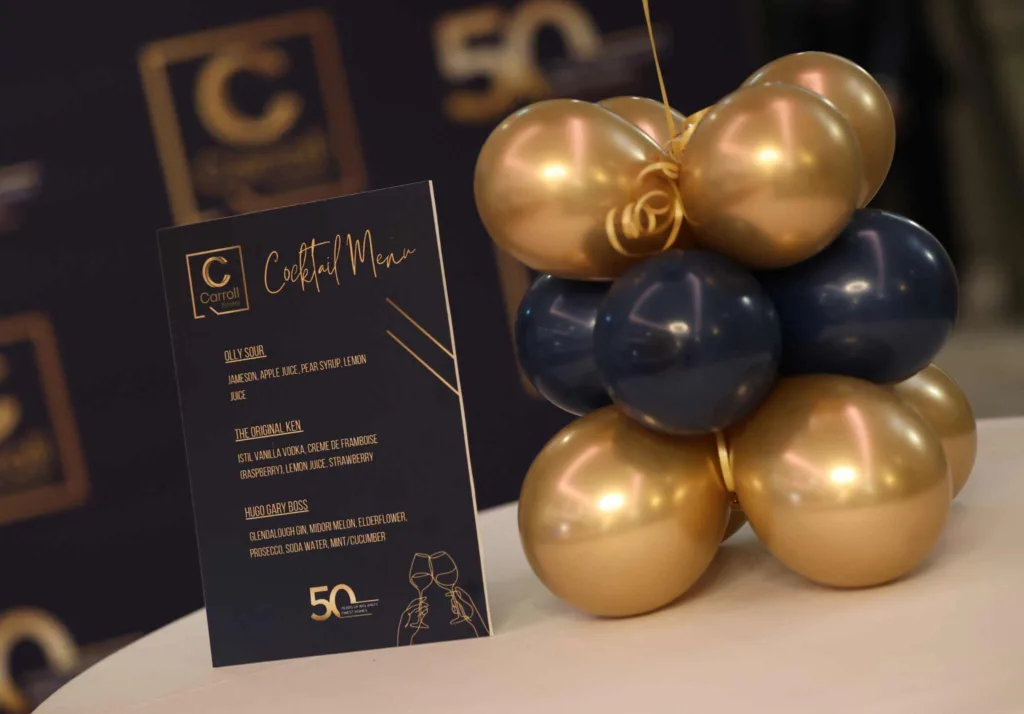 Marking 50 years in business is a huge milestone. Carroll Estates, one of Ireland’s leading property developers wanted to celebrate this special occasion in a way that honoured their legacy, celebrated their team, suppliers and long term partners and left a lasting impression on guests.
